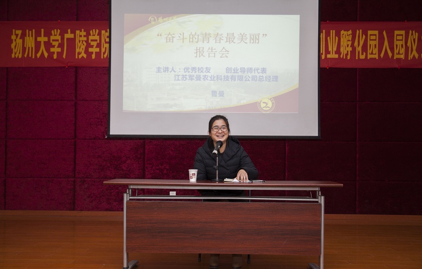 我院优秀校友、创业导师代表、江苏军曼农业科技有限公司总经理鲁曼作为企业代表发言,她向在场大学生介绍了自己的创业经历并告诫大学生们要懂得感恩。陈晓明院长进行了总结并发表讲话,他表示,大学生应当学好专业知识并将其转化为造福人类的物质产品和精神产品,同时还要提高自己的综合素质,培养创新创业的能力。