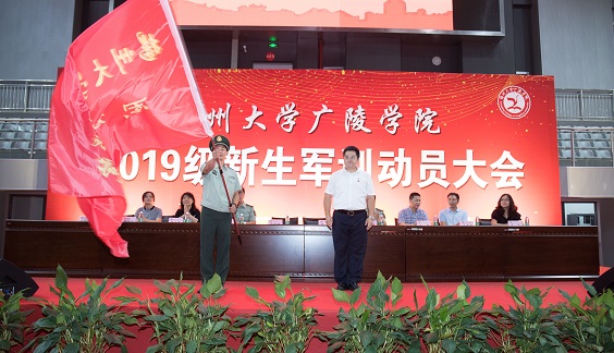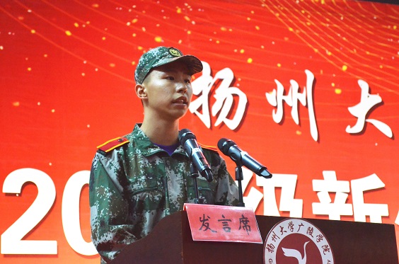 仪式上,虞强向2019级新生军训团团长雷聪聪授团旗。周宏伟宣读各营连编成情况、军训安排及要求。承训部队教官代表雷聪聪、新生代表云梓涵先后发言。雷聪聪代表全体军训团教官表示,一定认真履行教官的职责,营造良好的军训和生活氛围,确保圆满完成军训任务。同时,他也希望全体新生要居安思危、坚持坚定和继承传统、弘扬军队优良品格,做有责任、有担当的新时代青年。云梓涵代表全体新生表示,一定以一名“军人”的身份严格要求自己,听从指挥,服从命令,遵守纪律、历练自我。