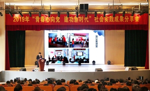 10月23日下午,我院2019年暑期“三下乡”社会实践活动成果分享会在文体馆三楼小剧场成功举办,我院全体2019级新生现场聆听报告。