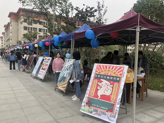 10月21日,在院团委的统一安排下,我院兼职团干、学生会、大学生媒体服务中心、大学生心理健康教育协会、大学生自我管理委员会、创新创业中心等院级学生组织在文体馆东门开展2020年招新活动。