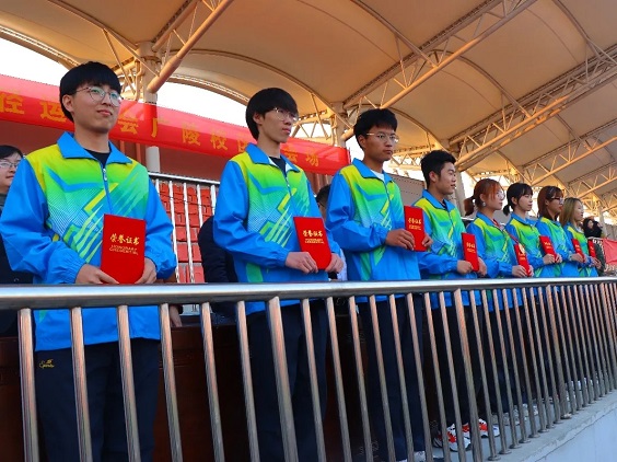 11月6日,扬州大学第二十五届田径运动会在文汇路校区田径场隆重举行。开幕式上,我院代表方阵身着统一服装,在铜管乐队激昂的演奏声中,手举标牌,喊着响亮的口号,昂首阔步走过主席台前,展现我院学子朝气蓬勃、奋发向上的青春风貌。