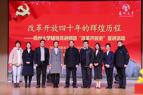 11月23日下午,扬州大学辅导员讲师团“党史”“改革开放史”分团走进我院,在文体馆三楼小剧场分别开展了以“中国共产党探索奋进历程及启示”和“改革开放四十年的辉煌历程”为主题的宣讲活动。物理科学与技术学院党委副书记高红明、马克思主义学院党委副书记黄蓉、我院党委副书记虞强等出席活动。我院学工处相关负责人、各系党总支副书记、全体辅导员及学生代表等1000余人参加活动。