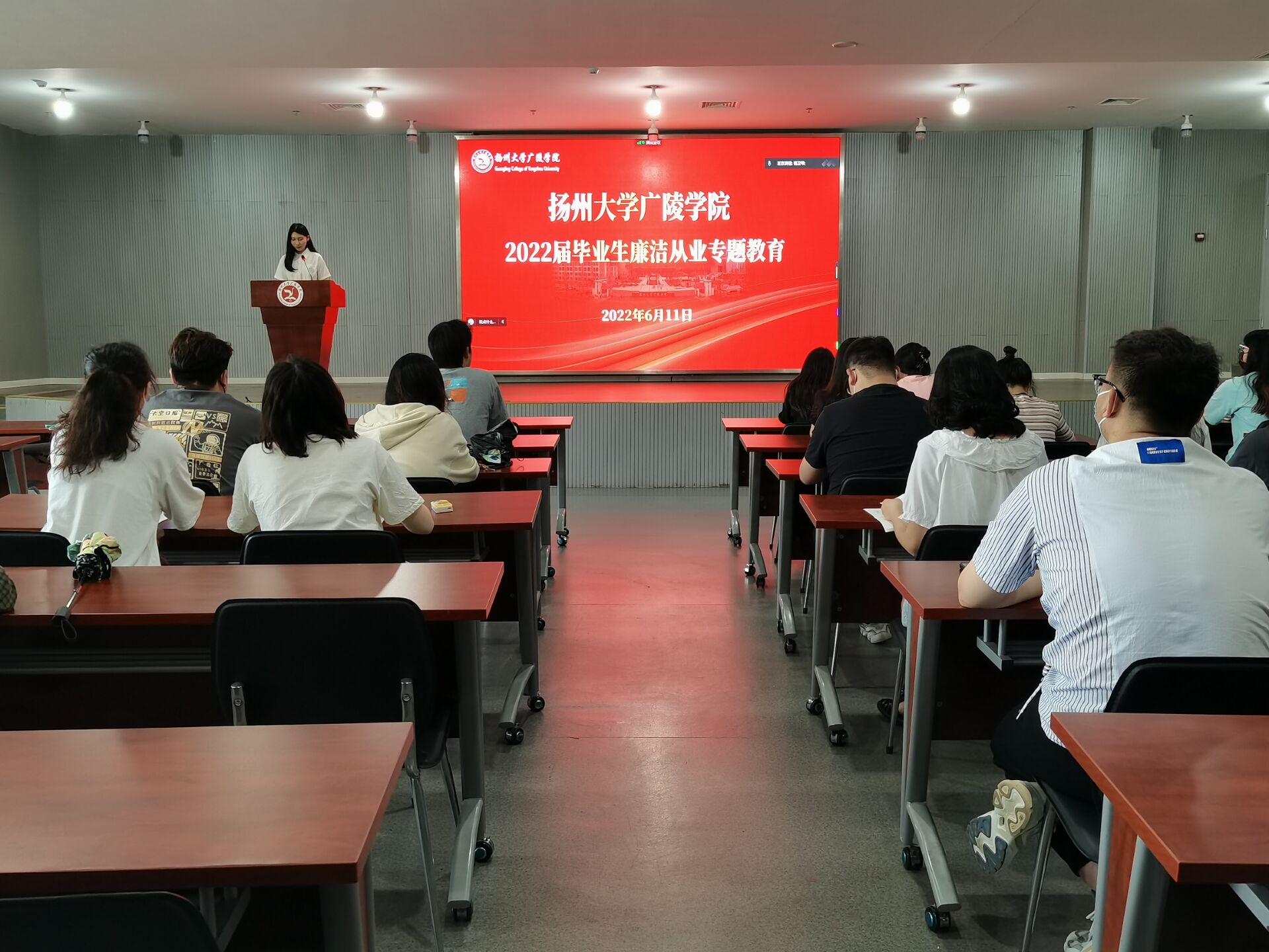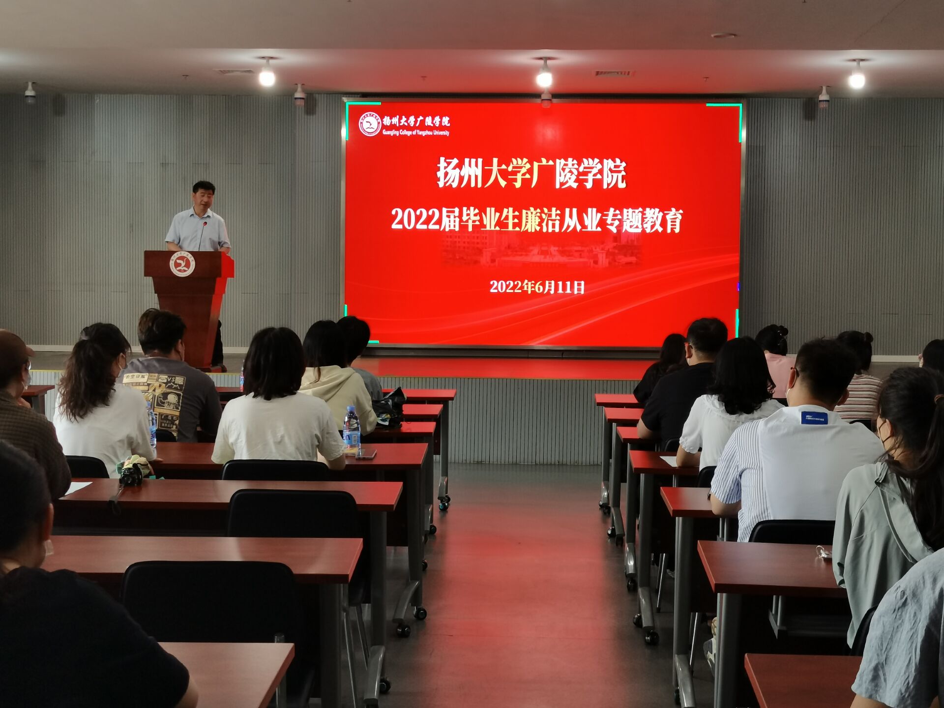 6月11日上午,广陵学院举办2022届毕业生廉洁教育专题培训。校纪委副书记赵晓兰应邀作专题报告,院纪委书记刘春秋主持会议。