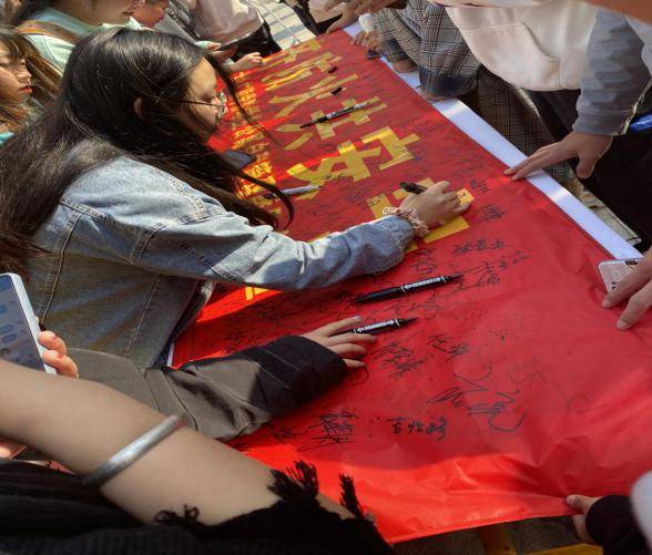 在活动开始前,自管会各部门按部就班完成各项工作,确保了活动的顺利进行,并在微信等校园平台上大力宣传,吸引了众多师生的参与。活动开始后,同学们的积极性很高,纷纷在现场的横幅上留下自己的姓名。