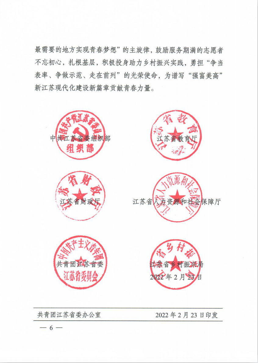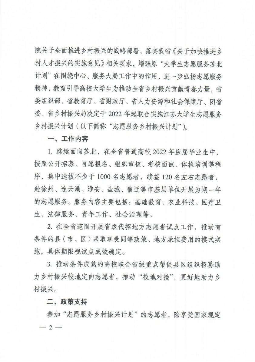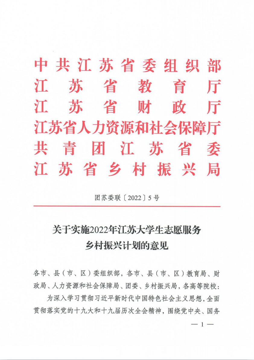 附件:团苏委联〔2022〕5号关于实施2022年江苏大学生志愿服务乡村振兴计划的意见.pdf