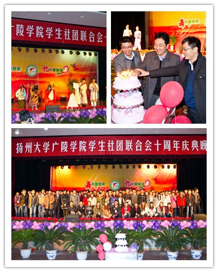 回首十年,广陵学院学生社团联合会在校团委、院党委领导下,院团委指导下,以服务和管理学生社团为宗旨,在带领各级学生社团繁荣校园文化、全面提高学生素质、促进和谐校园建设等方面做出了贡献,是建设校园精神文明、发展先进文化的重要力量。为学校、学院的社团工作发展、在校大学生学习能力、实践能力和创新能力的培养以及校园精神文化建设方面作出了杰出的贡献。此次十周年庆典是对院社团联合会十年来工作的总结回顾,同时也是社联人成长的见证,更是社联美好明天的新的开始!
