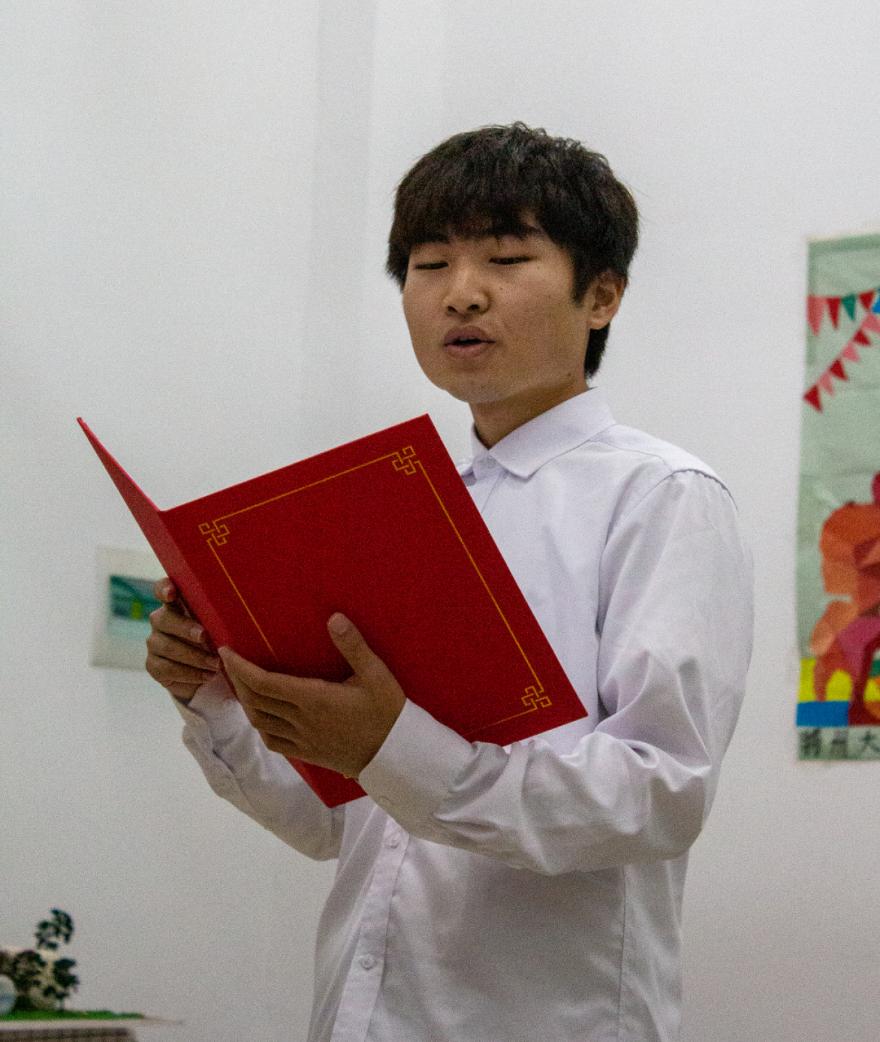 比赛正式开始,服装82202班羊旭同学带来的《祖国万岁》,羊旭同学的单人朗诵胜似多人,那铿锵有力,抑扬顿挫的朗诵方式将祖国的大好河山,万里疆域呈现在听众的脑海中,中华五千年优秀文化更是延续不断。