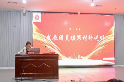 院团委学生兼职副书记徐梓童、宣传部学生兼职副主任胡智颖分别就发展团员工作流程的 “三公示,十步骤,六必须”进行了详细解读和说明。通过规范案例展示,对发展团员材料的填写方法、步骤进行细致指导,规范入团志愿书、团课学习记录、中国共产主义青年团团员发展过程纪实薄等材料的填写。