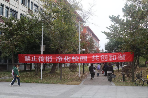 学院在文体馆东门人员流动密集场所悬挂了主题横幅,并摆放“打击非法传销”活动戗牌,从概念、表现形式及特征三个方面介绍了传销。通过两大典型案例,解读《禁止传销条例》宣传法规,警示大学生做到“知传避传”。同时,院团委志愿者协助扬州市市场监管局、市公安局人员发放《打击传销漫画读本》、《打击传销规范直销17问》等打传资料,引导大学生充分认识传销的特征、本质和社会危害。在活动现场,扬州市市场监管局、市公安局等领导人员为前来咨询的学生答疑解惑,针对传销的形式套路及应对措施做了更加细致通俗的讲解,提醒广大学生防范传销骗局。