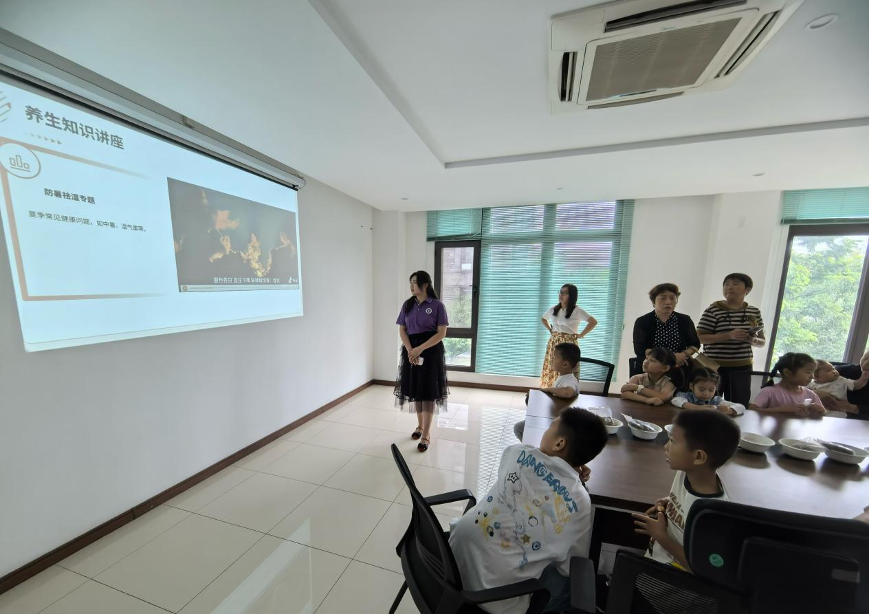 团队成员沈为源热情欢迎到场的老年居民及其家属,以亲切幽默的话语拉近与大家的距离,并详细阐述了本次夏季防暑保健活动的意义与环节安排。她借助精心制作的图文并茂的PPT,从夏季高温对老年人身体机能的影响切入,逐步展开讲解。同时,结合老年人的生活习惯,分享居家避暑妙招,如合理使用空调风扇、自制降温小物件,强调饮食上多补充水分、食用清热解暑食材的重要性,希望帮助老年居民对夏季防暑与保健有更进一步的认知。
