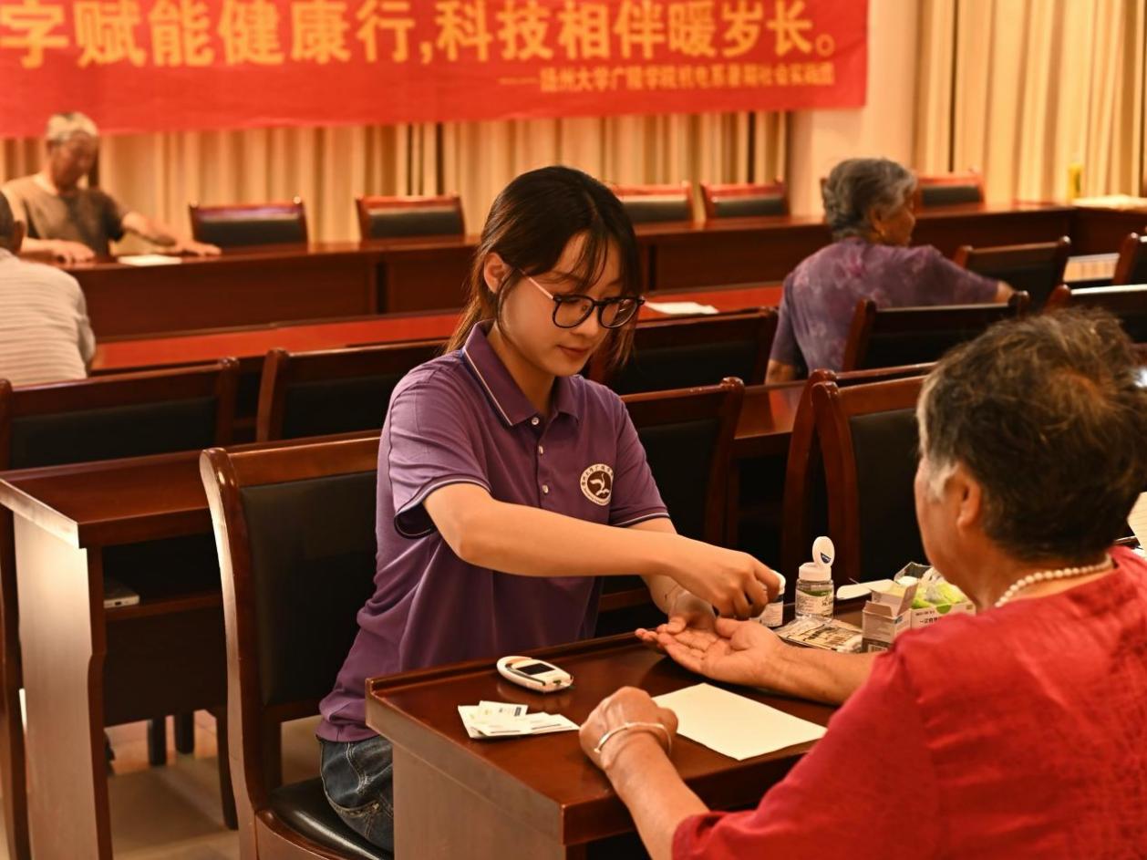 (图为6月29日,“智汇小岗——三维赋能”团队帮助小岗村中老人进行健康监测。邹高阳供图)
