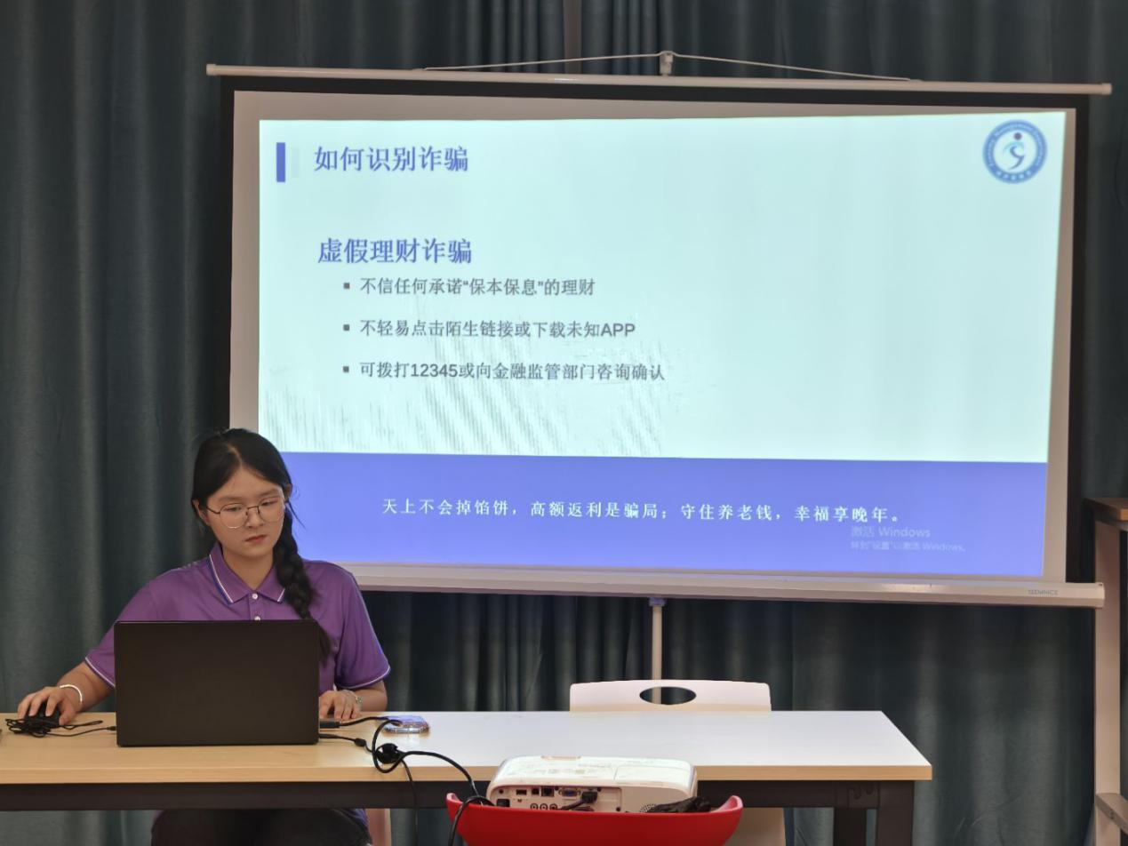 为提升老年人群体防诈意识,守护晚年幸福生活,6月23日,扬州大学广陵学院经济管理系“‘骗假’不留行动组”前往扬州市邗江区古津社区党群服务中心开展防范诈骗的知识讲座。