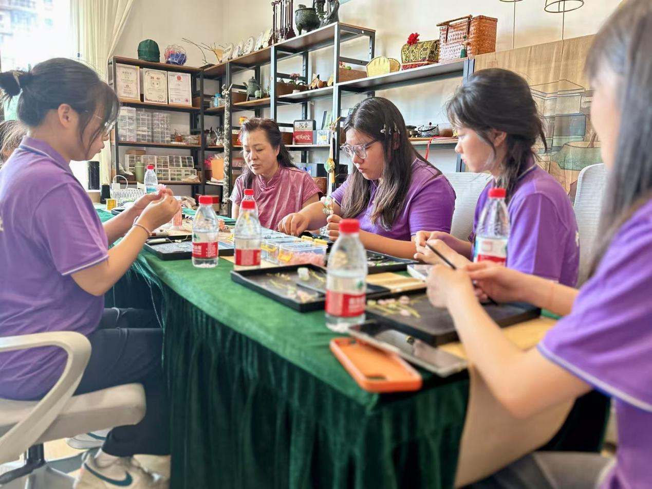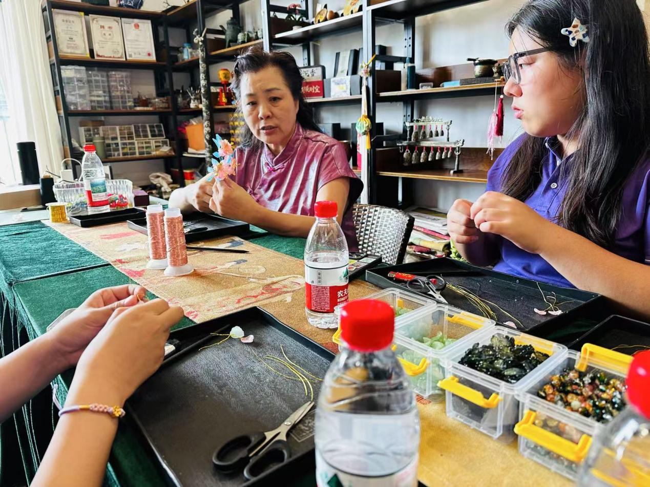 (图为6月19日,“宝簪新语 乡传华韵”实践团队聆听陈琦老师讲解簪花的制作工艺。于子怡供图) |