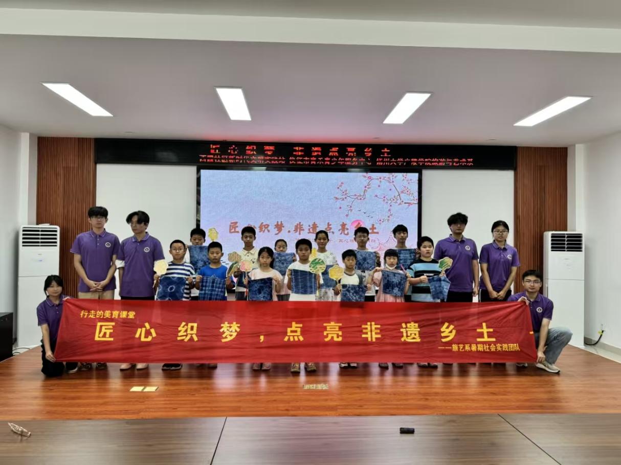 活动尾声,小朋友们手持竹编、扎染作品,与成员们合影留念。此次活动,以非遗为纽带,搭来,实践团队将继续探索“行走美育课”模式,推动非遗文化传承。
