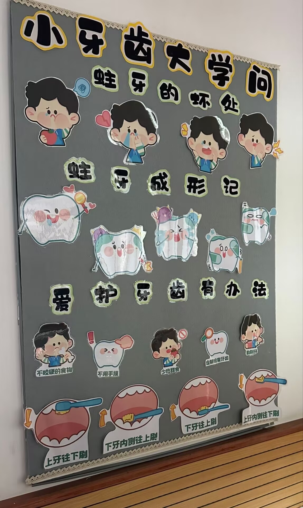 “小牙齿大学问”活动现场充满欢声笑语。团队成员周生洁、徐博化身亲切的“健康小老师”,借助生动有趣的动画来讲解牙齿的结构与功能、不刷牙的危害以及正确刷牙的方法。孩子们认真聆听后,踊跃参与“小牙齿大学问”的海报制作。