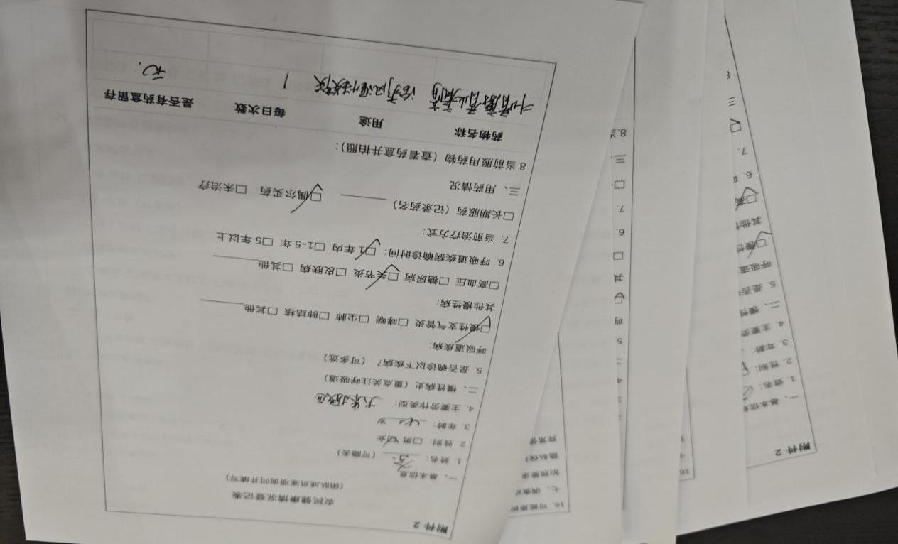 (图为7月5日,“药露滋秧绿 护心映穗黄”实践团队成员所做的调查问卷。王玥供图)
