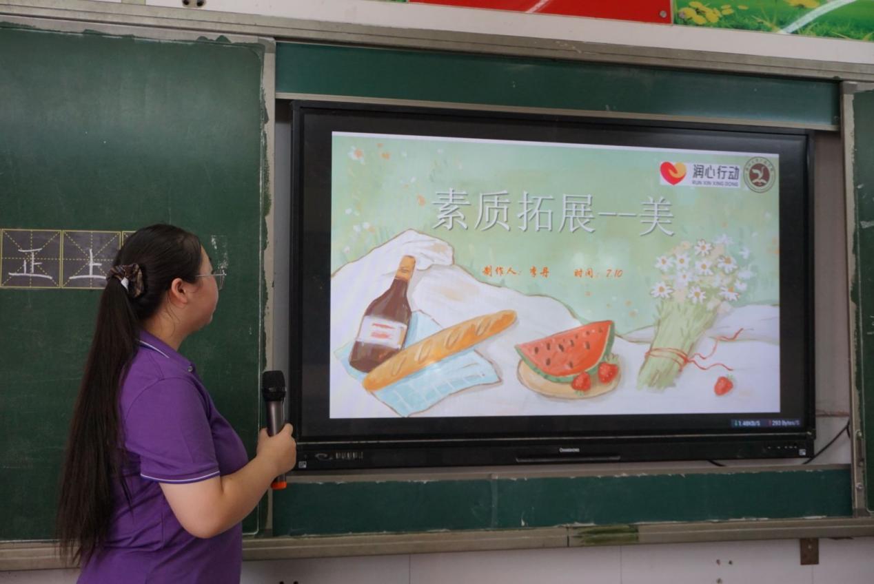 (图为7月11日,“赤云河”支教团成员王益茗为七年级学生讲解压花步骤。孙雪瑶供图)