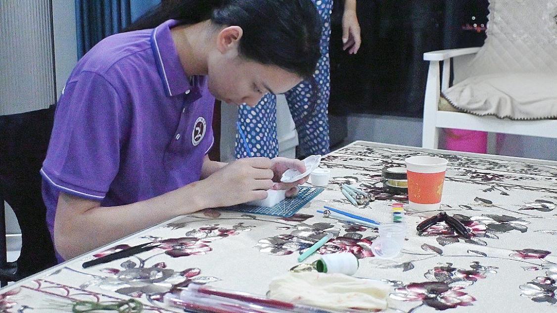 (图为7月14日,“指尖承古韵,通草焕新生”三下乡社会实践走进社区活动中居民制作的通草花。胡欣怡供图)
