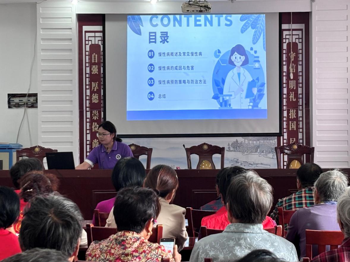 团队成员王沁淼以精心制作的中医养生PPT为载体,开启了这场知识盛宴。从夏季中医养生的基本原则“顺应天时、注重祛湿”切入,深入浅出地剖析了夏季常见疾病的成因与预防。随后,团队成员送上了特制的小扇子。现场居民时而认真记录要点,时而拿出手机拍摄关键内容,学习氛围浓厚。