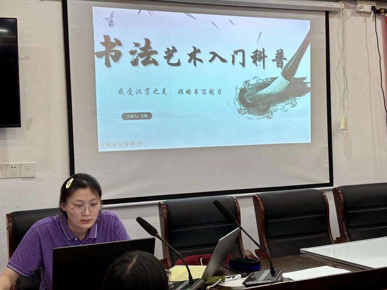石瑜以“书法的定义”切入课程,对比日常书写与书法技艺的差异引导学生们明白:书法不仅是写字,更是借提按、顿挫等技巧展现线条美感与情感意境的艺术。了解书法历史脉络时,石瑜向学生们展示甲骨文、金文等字体图片,解析书法的起源、发展与延续,将汉字演变的厚重历史化作生动故事传递出去。