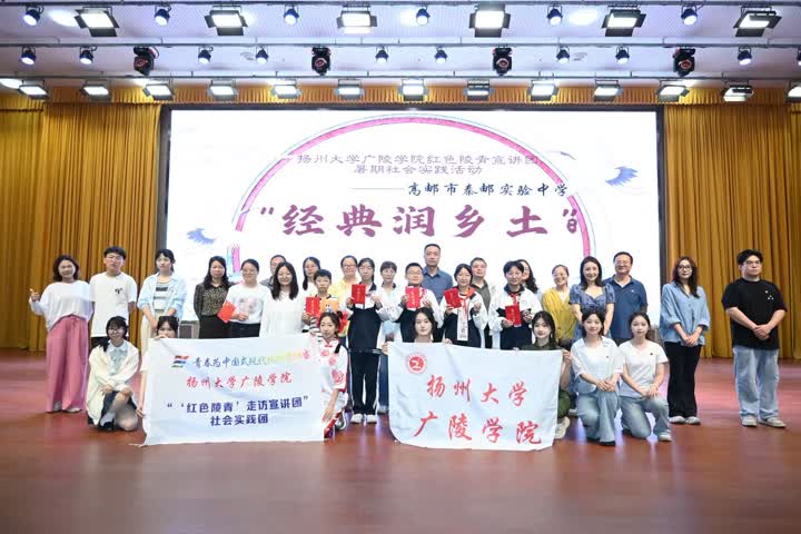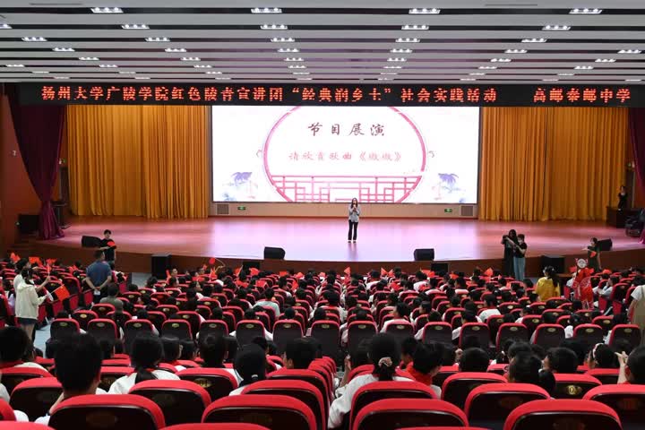 为传承中华优秀传统文化,厚植青少年家国情怀,6月6日,扬州大学广陵学院“红色陵青”宣讲团与市教育局、高邮市秦邮实验中学联合开展“经典润乡土”活动。团队以非遗舞蹈、红色宣讲、青春歌曲、朗诵互动为载体,用传统文化与家国情怀浸润校园青春土壤。