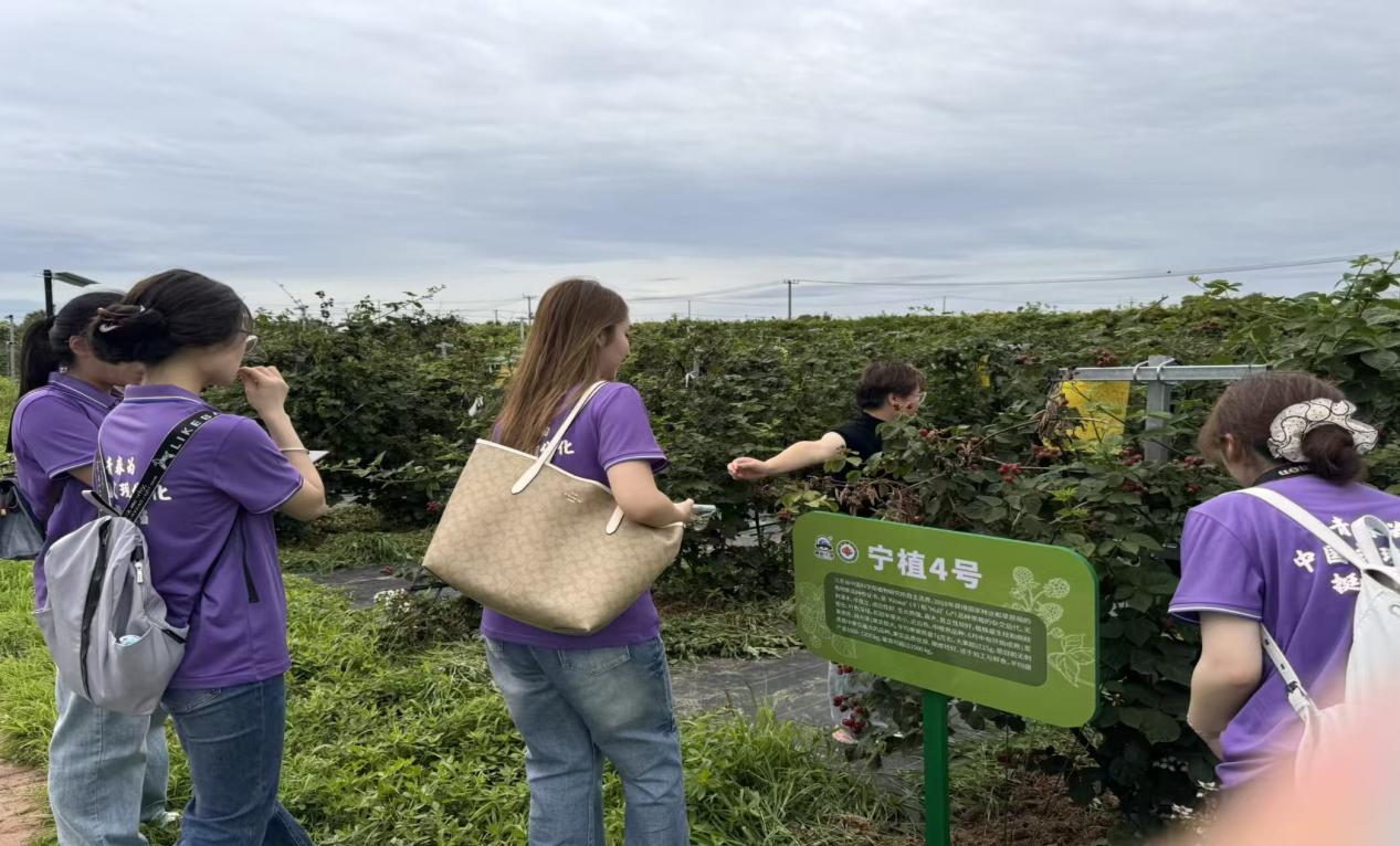 在马集镇族谱园,团队成员沉浸式调研黑莓产业。通过参观,详细了解“切斯特”“宁植4号”等品种的培育历程,明晰黑莓产业与乡村发展的关联脉络,直观感受特色农业发展现状,为后续助力产业发展积累一线经验。