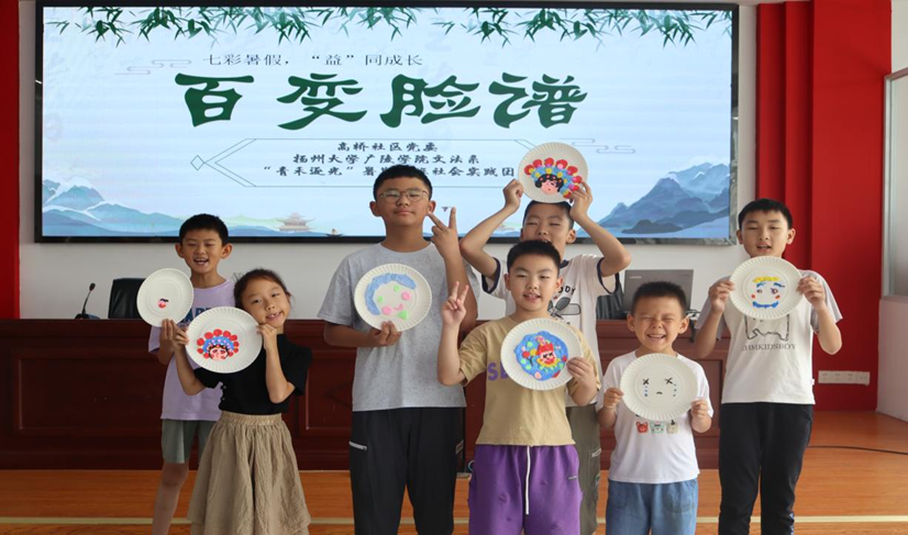 为厚植传统文化根基,激发青少年对传统戏曲艺术的兴趣,7月11日,扬州大学广陵学院“青禾逐光”暑期托班社会实践团队联合扬州市邗江区汊河街道高桥社区,开展“黏土塑脸谱,童趣传非遗”主题实践活动。