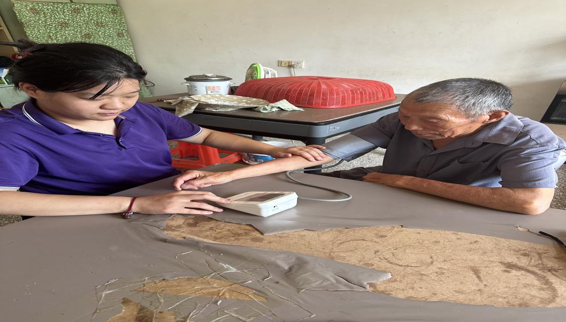 当前中老年人群高血压疾病高发,为有效防范疾病风险、提升老年人身体素质,在7月28日,扬州大学广陵学院“阳光医疗队”成员张云霄走进了江苏省盐城市阜宁县芦蒲镇明吴村,开展血压检测和知识普及活动,为老人们带去关爱。