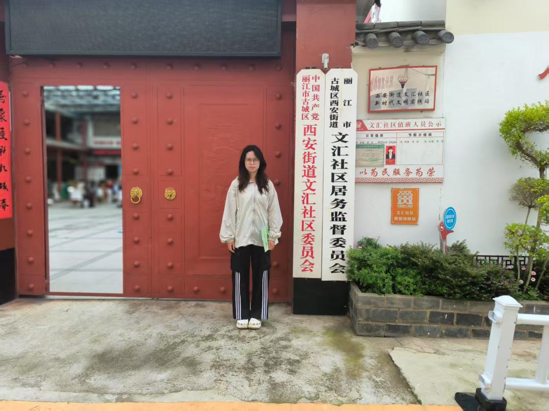 (图为6月24日,“乡村振兴走基层,青春聚力正当时”团队成员子湫垚同学在社区委员会留影。子湫垚供图。)