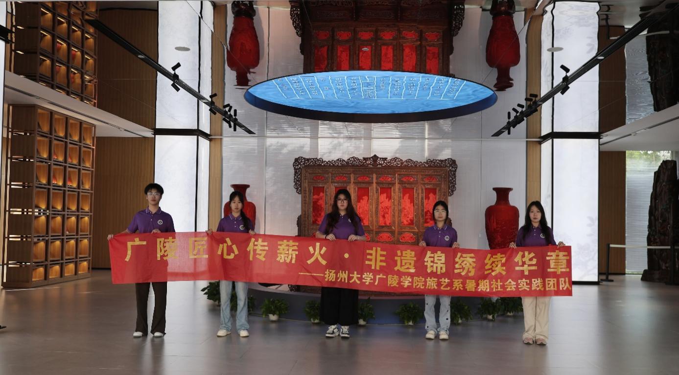 为传承非遗技艺,守护文化根脉,秉持“匠心传承、文脉赓续、薪火相传、守正创新”的信念,8月24日,扬州大学广陵学院“广陵匠心传薪火,非遗锦绣续华章”实践团队走进扬州非遗珍宝馆,开展探访非遗瑰宝、感悟匠人精神的文化实践活动。