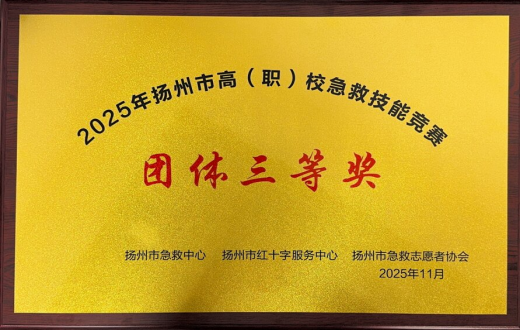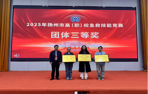 11月22日,由扬州市急救中心、扬州市红十字服务中心、扬州市急救志愿者协会联合主办的2025年扬州市高(职)校急救技能竞赛圆满落幕。经过激烈角逐,我院代表队获团体三等奖,个人三等奖2名。