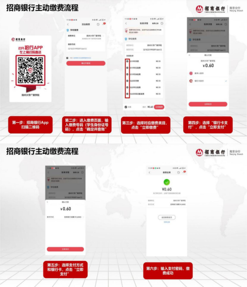 二、预存参保费用。全日制在籍学生新学年开学前,老生在招行卡中预存300元参保费用,由财务处统一扣款结算;新生在招行卡中预存整个学制的医保费用(四年制1200元,二年制600元)。后续由财务处统一扣款结算,扣款未成功的同学,可登录招商银行APP扫码自助缴费或咨询财务处(文体馆N102)。