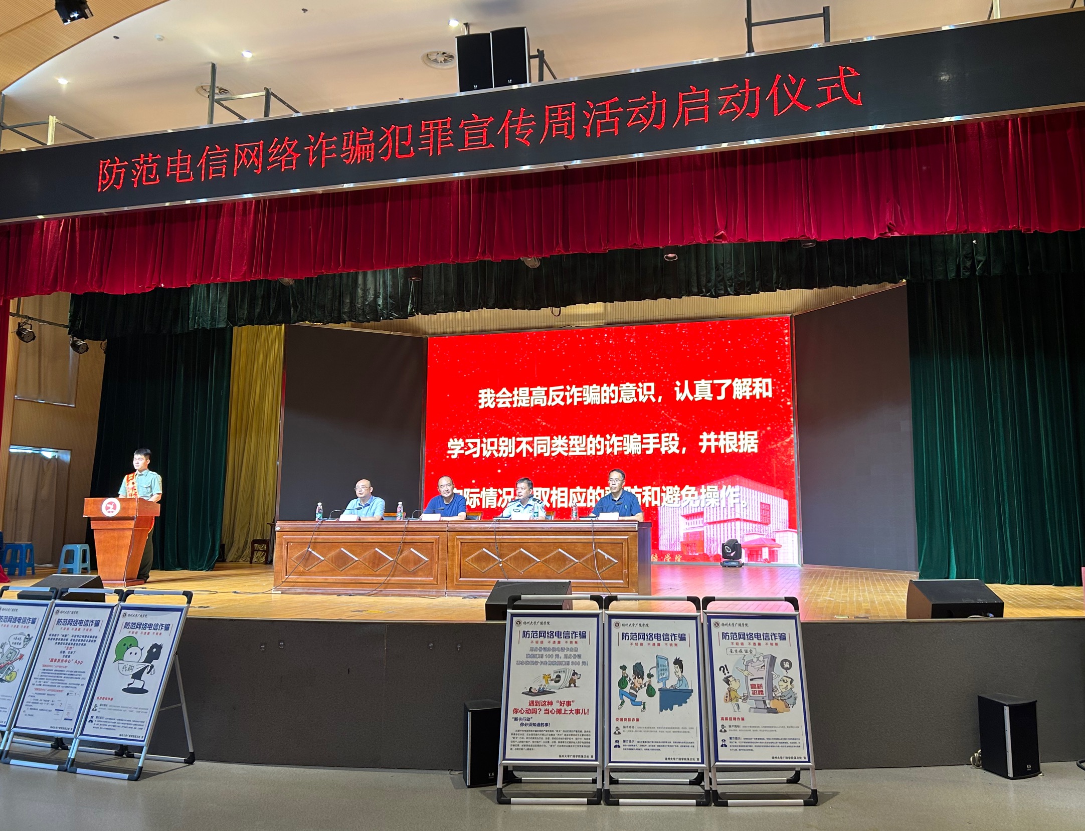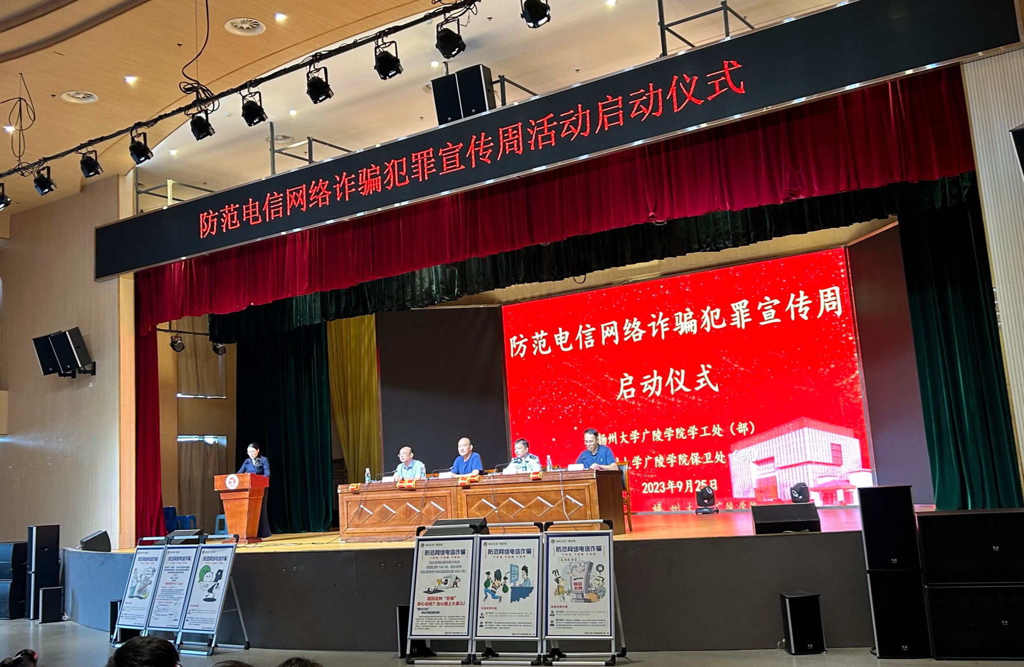 为深入贯彻《省教育厅 省公安厅 省人力资源和社会保障厅关于印发全省校园防范电信网络诈骗犯罪宣传周活动方案的通知》(苏教信函〔2023〕13号)文件精神,营造校园反诈浓厚氛围,提升宣传实效,切实维护广大师生切身利益。9月21日下午,学院在文体馆三楼小剧场举行了主题为“警校联手共筑反诈防线,师生同心创建无诈校园”的防范电信网络诈骗犯罪宣传周启动仪式。院长助理孔德庆,汊河八里派出所所长彭正亮等领导出席了本次活动。